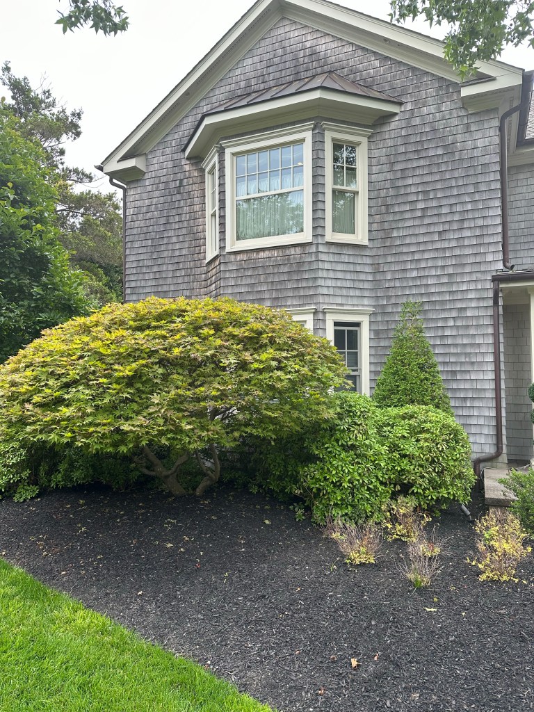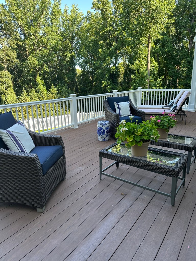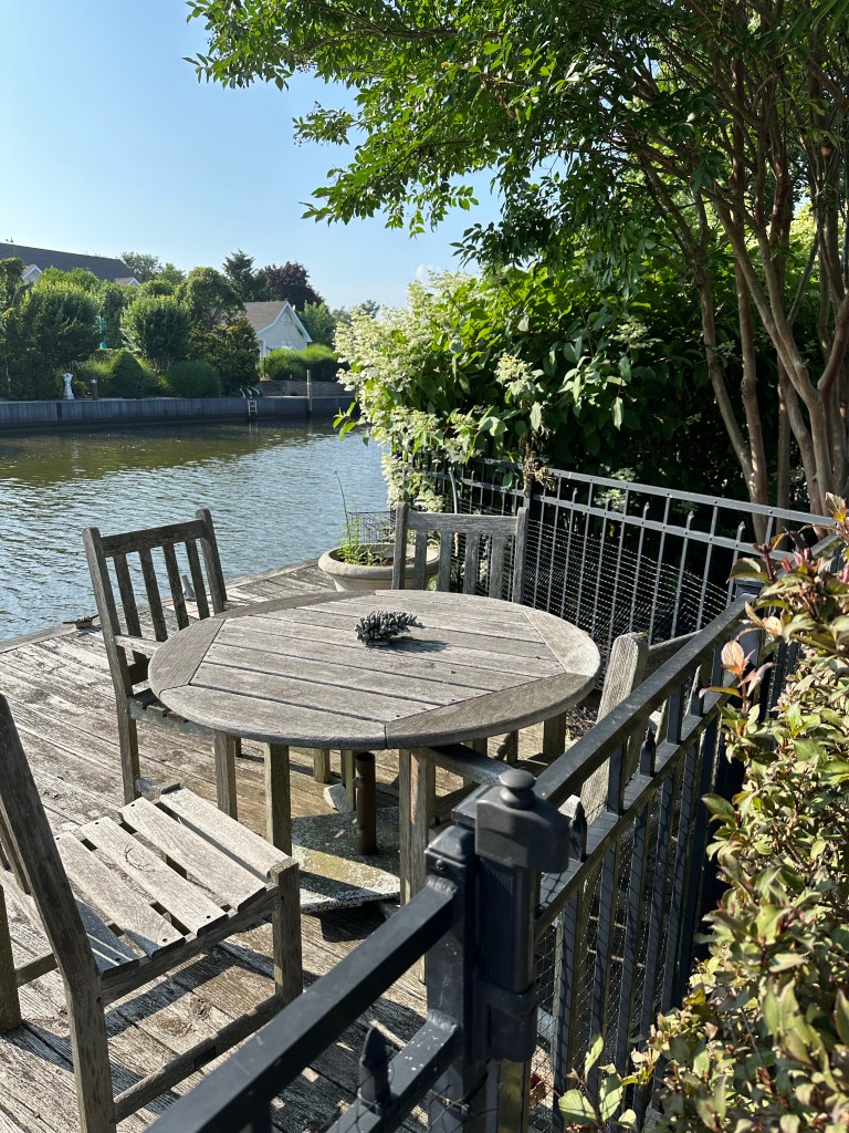 On the upside, the sellers have removed all their patio furniture. The garden is rather shaggy and needs pruning, but I have some clean shots of the house. I’m really happy with the space and look. When we get patio furniture, I’m looking for the classic Hamptons to Maine style: lots of teak, cedar, wicker! I am excited about our new backyard.